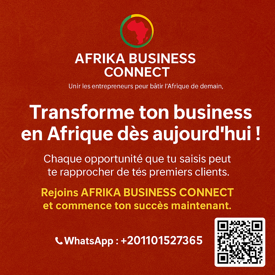 Afrika Business Connect est le réseau qui te rapproche de tes premiers clients et des bonnes opportunités : Accès à un réseau d’entrepreneurs africains motivés. Conseils pratiques pour lancer et développer ton business rapidement. Opportunités exclusives pour faire croître ton entreprise dès maintenant. Guide PDF gratuit pour t’aider à démarrer sans perte de temps.
